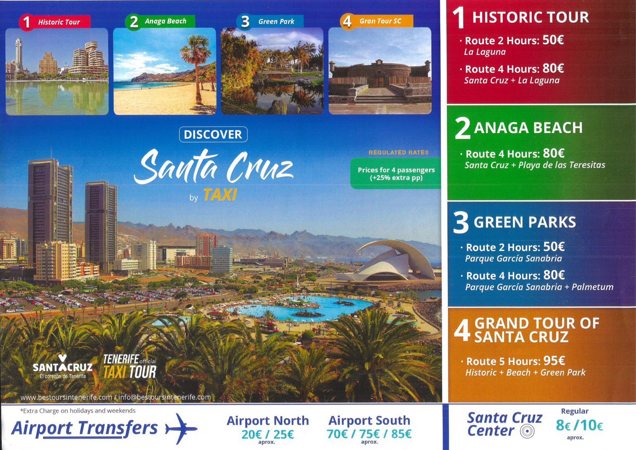 Santa Cruz de Tenerife es una ciudad pequeña y acogedora con un ambiente tranquilo y agradable, pero a la vez cosmopolita y festiva, especialmente durante su famoso carnaval. Si deseas conocer la ciudad, puedes hacerlo fácilmente a pie o mediante una ruta en taxi por sus diversos rincones.